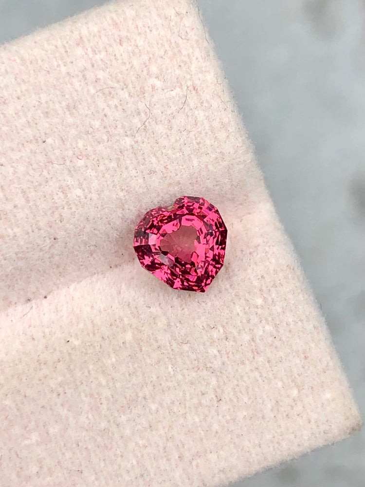 Presenting a stunning 1.435-carat Natural Mahenge Garnet featuring a striking vibrant pink hue — a signature color that has made Mahenge garnets some of the most sought-after gemstones in the world. This beautifully faceted heart-shaped gem offers exceptional brilliance, clean clarity, and natural sparkle with no treatments whatsoever.