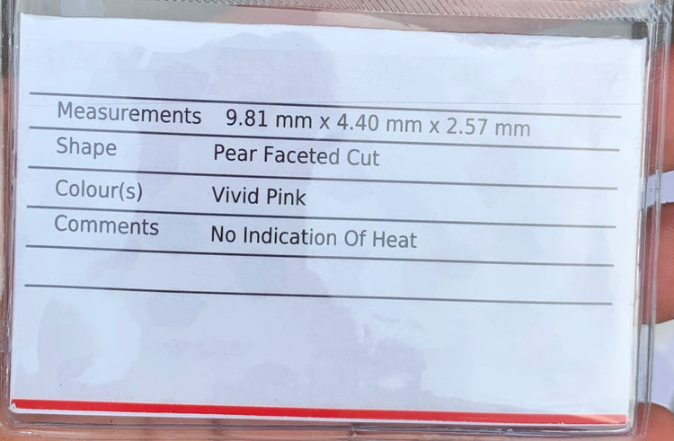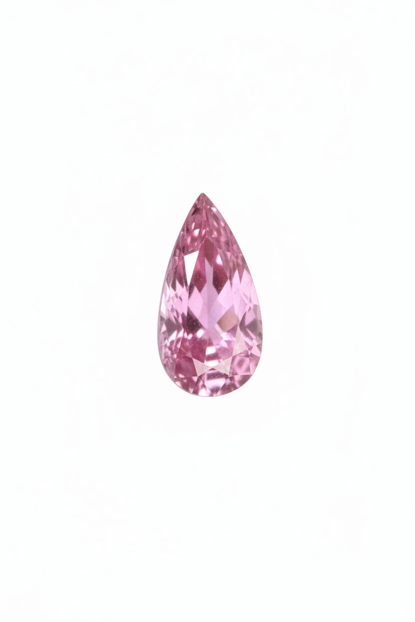 Presenting a 0.84-carat Natural Pink Sapphire featuring a vivid pink hue and elegant pear-shaped faceting. This gemstone displays pleasing brilliance and well-balanced proportions, making it suitable for refined jewelry designs.