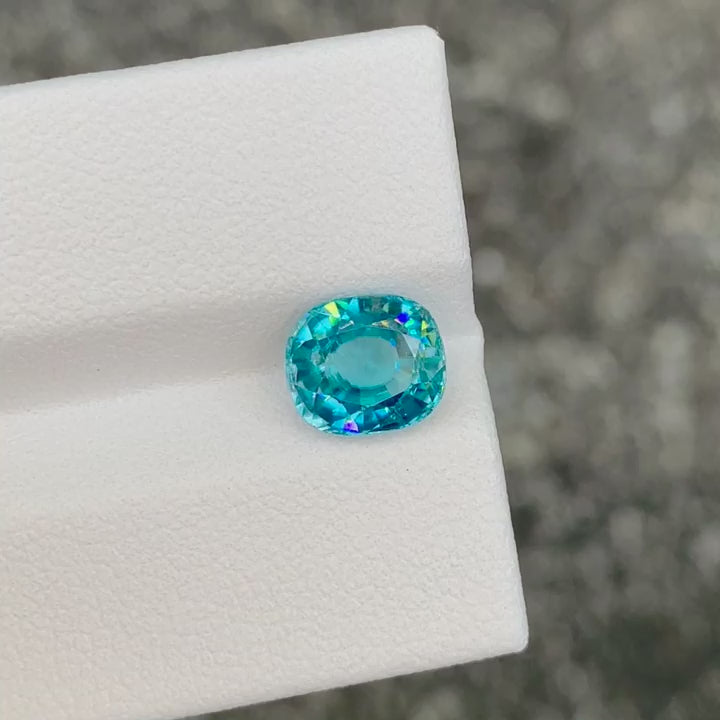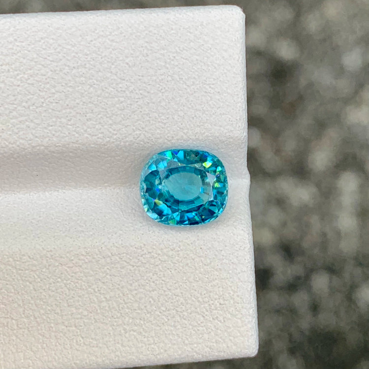 Natural Blue Zircon | 2.985 Ct | Beautiful Vibrant Blue | Cushion-Cut Faceted | Heat Treatment | Top Luster | Cambodia Origin