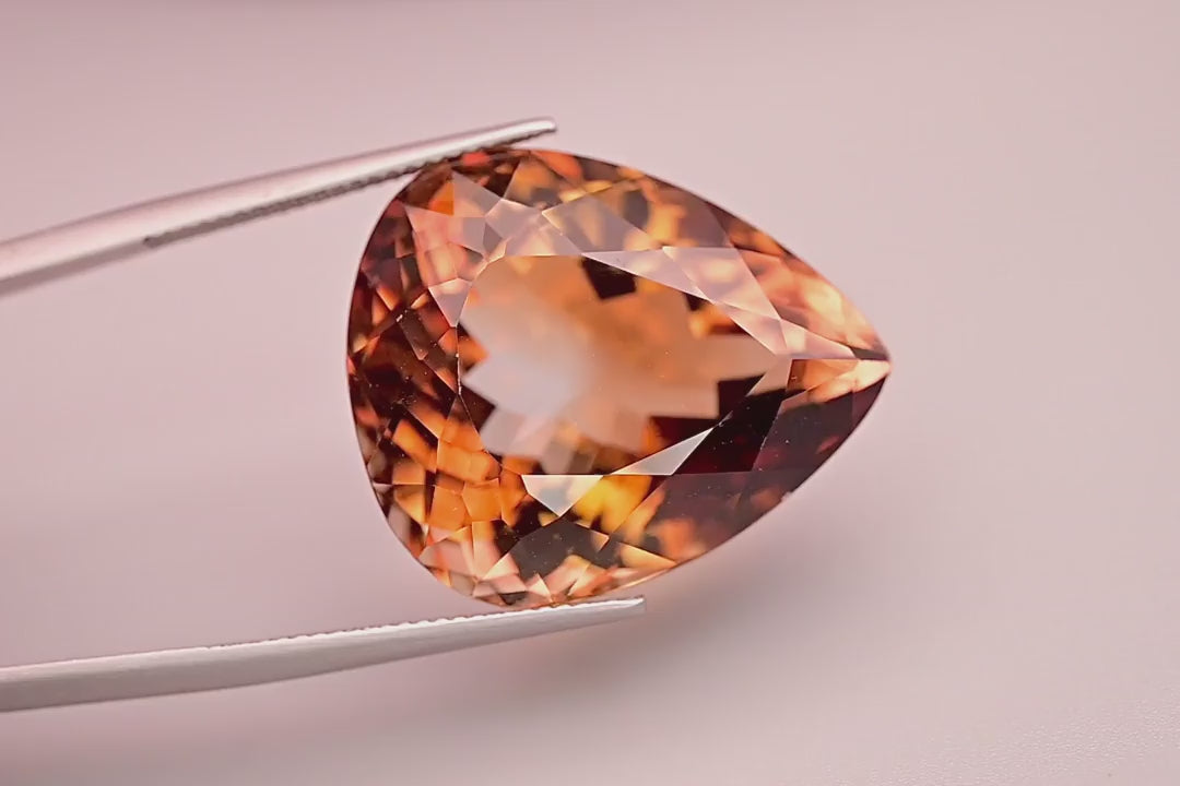 Natural Imperial Topaz | 53.27 Carats | Pear Faceted | VVS Clarity | Untreated | Certified | Brazilian Origin | Rare Earthy Orange-Brown Tone
