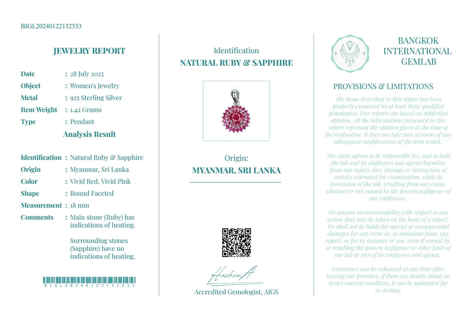 Authenticity Certificate (Gemstone & Metal)