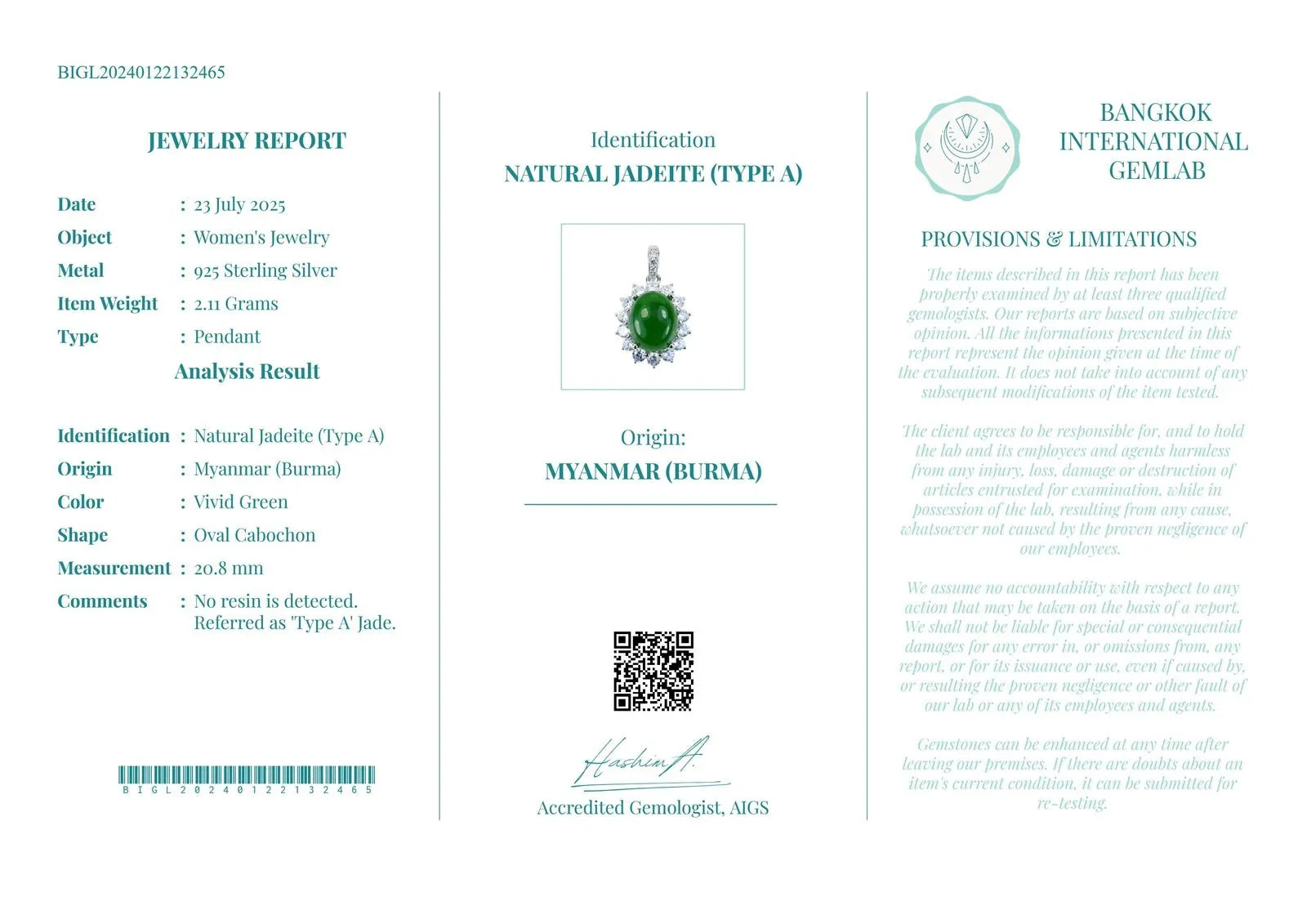 Natural Type A Jadeite | Untreated | Vivid Green Hue | 925 Sterling Silver | Certified Authenticity Included