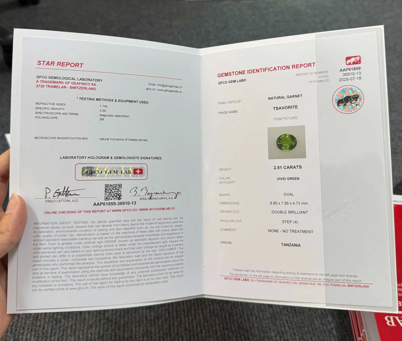 💎 Certified Vivid Green Tsavorite Garnet – 2.51 Carats | Untreated | VVS Clarity | Tanzania Origin