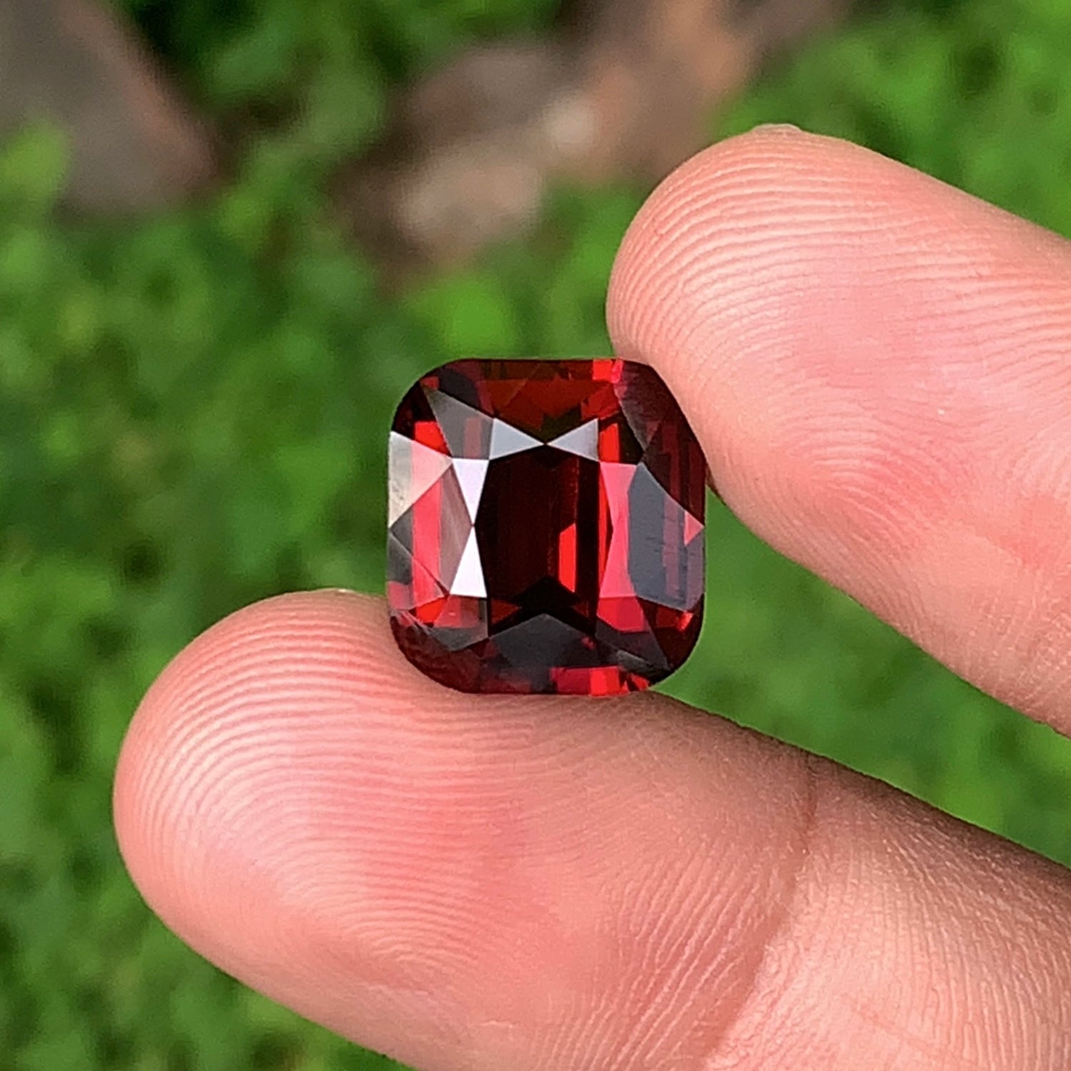 This exceptional gemstone displays a vivid, glowing red hue, paired with VVS clarity and a masterfully cut cushion shape that enhances brilliance, fire, and overall presence. Completely untreated, this Garnet reflects natural beauty at its finest.