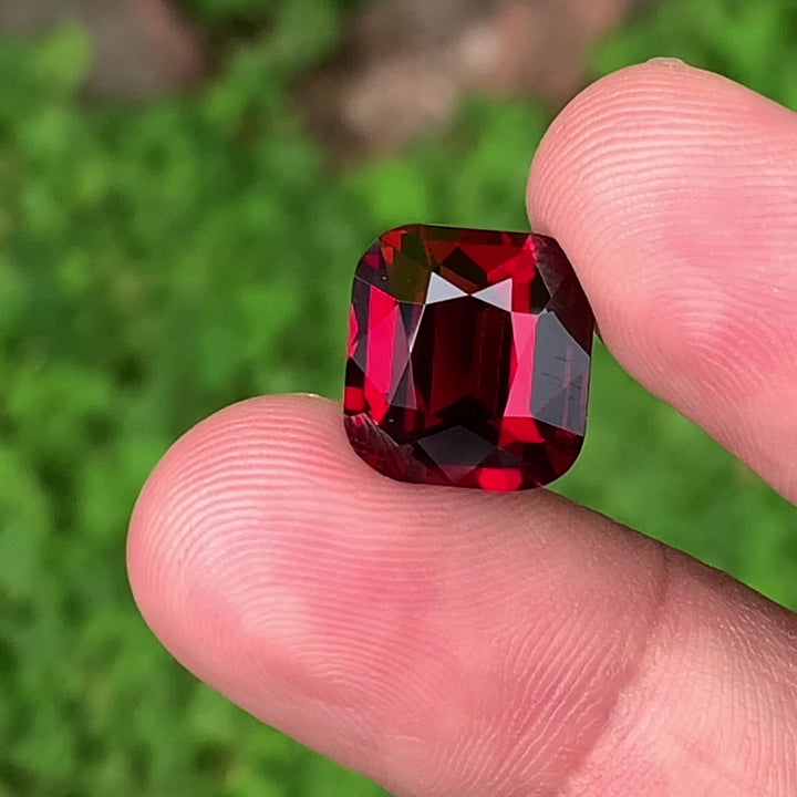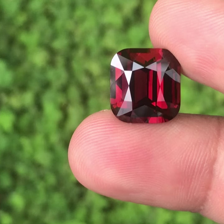 Natural Mahenge Garnet (Almandine) - 9.25 Ct | Vivid Red | Cushion Faceted | VVS Clarity | No Treatment | GFCO Certified | Tanzania