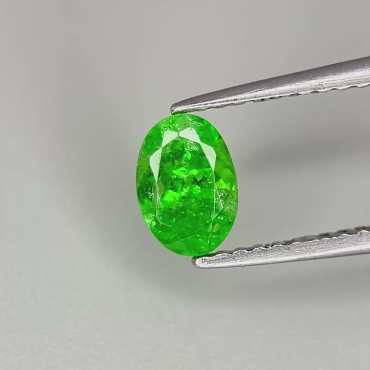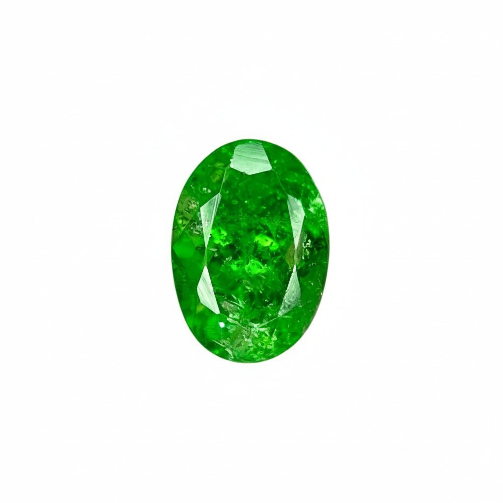 Presenting a 0.89-carat Natural Tsavorite Garnet showcasing an intensely vivid green hue — one of the most prized colors in the garnet family. Known for its brilliance, durability, and rarity, this gemstone exhibits outstanding luster and a beautifully balanced oval cut that enhances its natural sparkle.